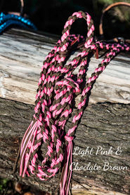 My loping hackamores or braided bridles are hand made by myself. They are made of 550 paracord. Extremely durable and long lasting, these bites bridle are great in the warm up pen, tail rides or just an easy day at the barn.